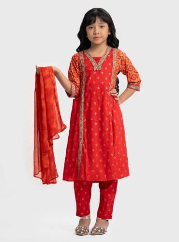 Red Cotton A-line Salwar Kameez