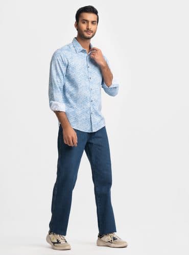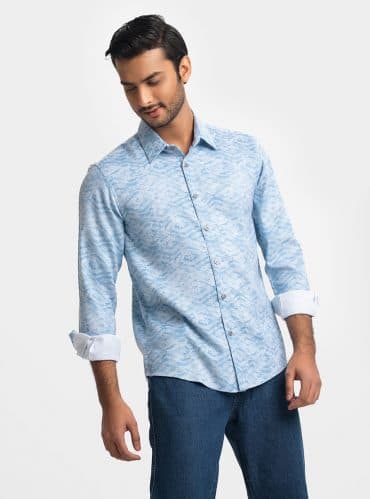 Blue Premium Textured Woven Business Casual Shirt