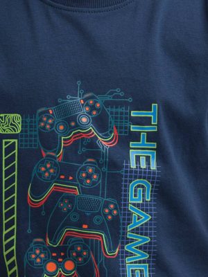 Navy Blue Cotton Short Sleeve T-shirt