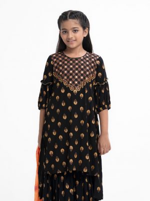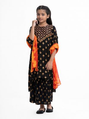 Black Viscose High-low Hem Salwar Kameez