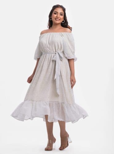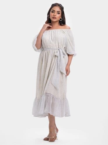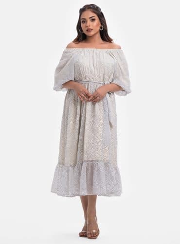 White Georgette A-line Maxi Dress