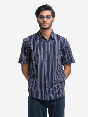 Blue Bamboo Jacquard Semi-fitted Panjabi