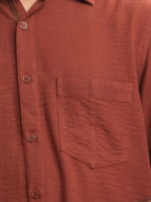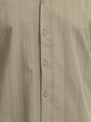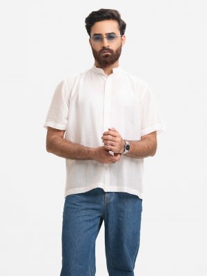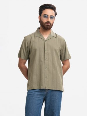 Green Cotton Jacquard Cuban Collar Casual Shirt