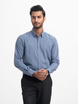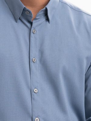 Blue Cotton-blend Long Sleeve Business Formal Shirt