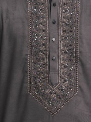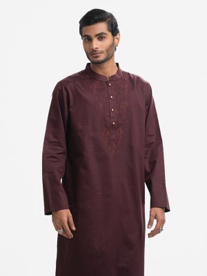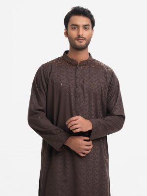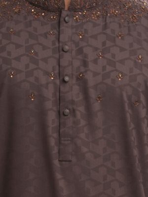 Brown Bamboo Jacquard Semi Fit Panjabi