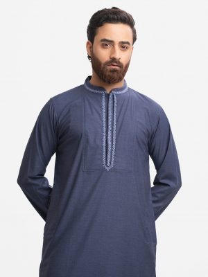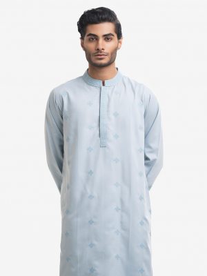 Blue Bamboo Jacquard Semi Fitted Panjabi