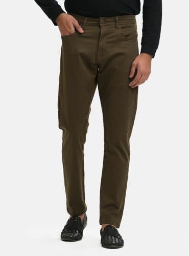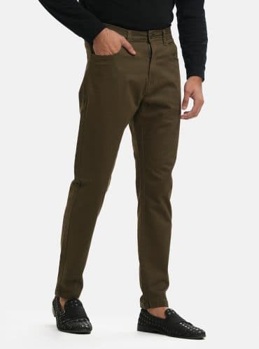 Olive Green Stretchable Cotton Slim-fit Chinos Pant