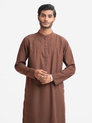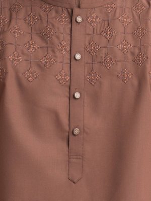 Brown Bamboo Jacquard Semi Fitted Panjabi