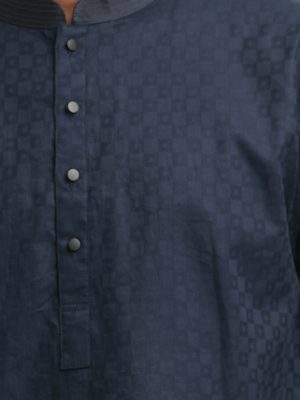 Navy Blue Jacquard Fitted Panjabi