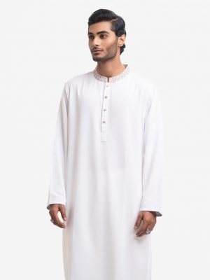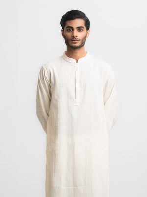 White Stretchable Rayon Fitted Panjabi