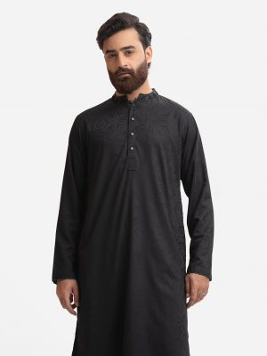 Black Jacquard Fitted Panjabi