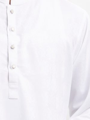 White Jacquard Fitted Panjabi
