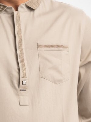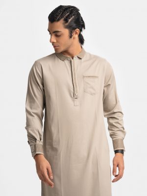 Brown Bamboo Jacquard Fitted Panjabi