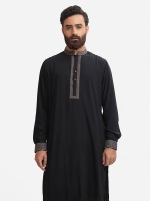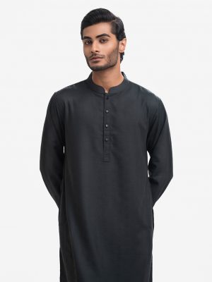 Black Viscose Fitted Panjabi