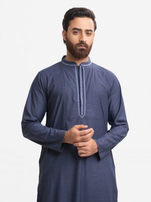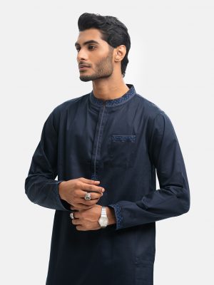 Navy Blue Cotton Fitted Panjabi