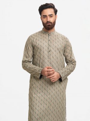 Green Cotton Fitted Panjabi