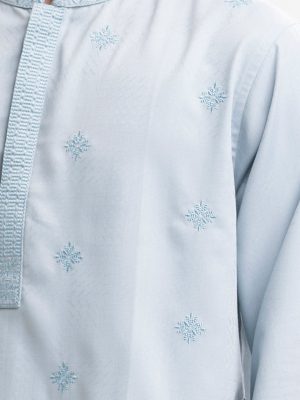 Light Blue Jacquard Fitted Panjabi
