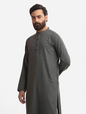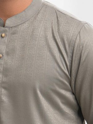 Gray Bamboo Jacquard Fitted Panjabi