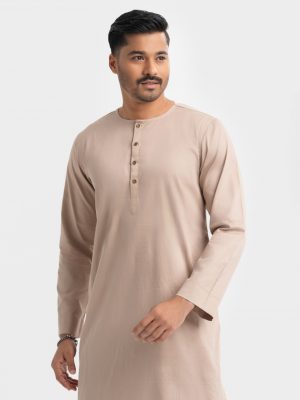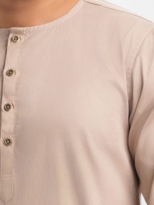 Beige Cotton Fitted Panjabi