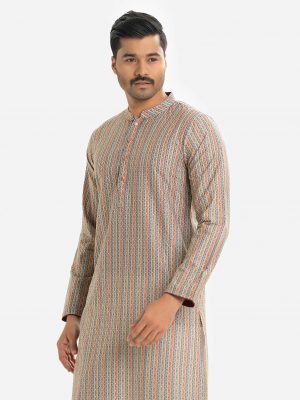 Multi-color Cotton Slim-fitted Panjabi