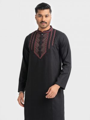 Black Jacquard Slim Fitted Panjabi