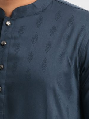 Navy Blue Jacquard Slim Fitted Panjabi