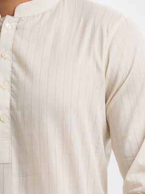 Off White Cotton Semi Fitted Panjabi