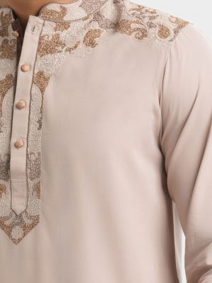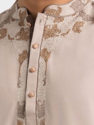 Brown Cotton Semi Fitted Panjabi