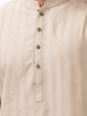 Beige Cotton Semi Fitted Panjabi