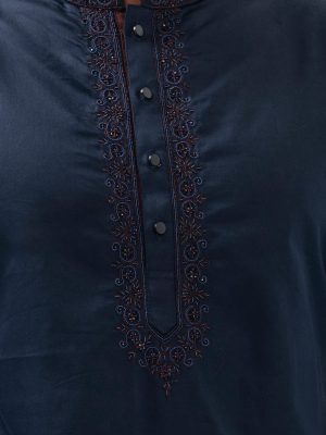 Blue Cotton Semi Fitted Panjabi
