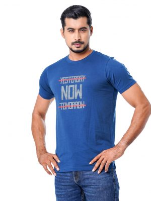 Teal Blue Cotton Knit Short Sleeve T-Shirt