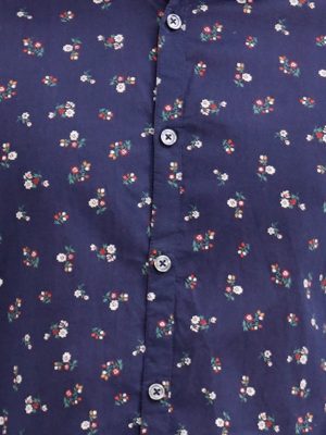 Navy Blue Ramie Cotton Short Sleeves Casual Shirt