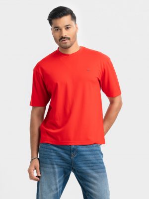 Red Cotton Short Sleeve Drop Shoulder T-Shirt