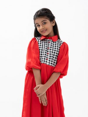 Red Art Silk A-line Frock