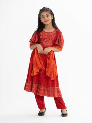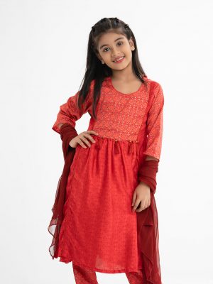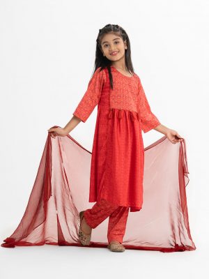 Red Art Silk A-line Salwar Kameez