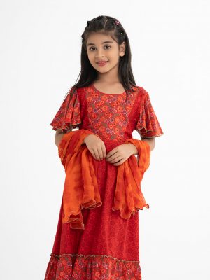 Orange and Blue Viscose Ghagra Choli
