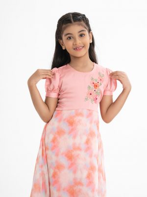Pink Crepe Layer Style Frock