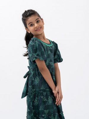 Green Cotton A-line Frock