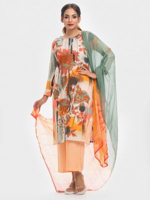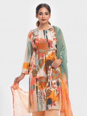 Multi-color Cotton Straight Salwar Kameez