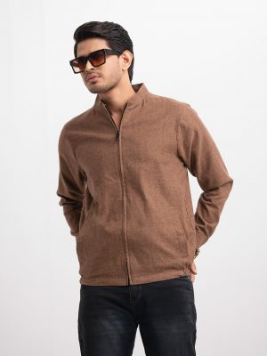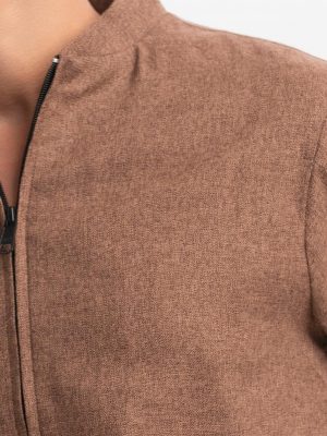 Brown Cotton Blended Bomber Jacket