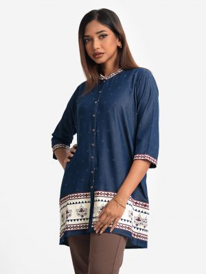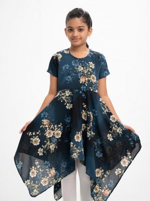 Blue Georgette Elongated Hem Tunic