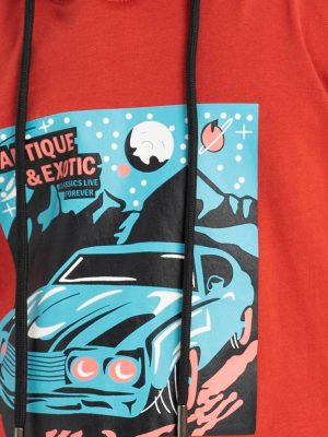 Red Cotton Long Sleeve Hoodie T-Shirt