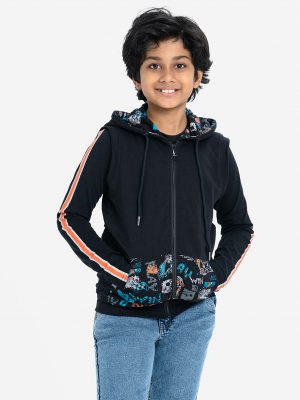 Black Cotton Hoodie Sweatshirt