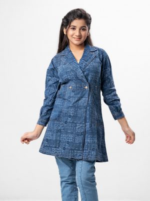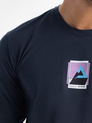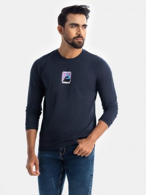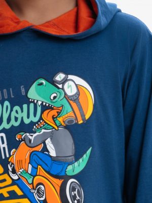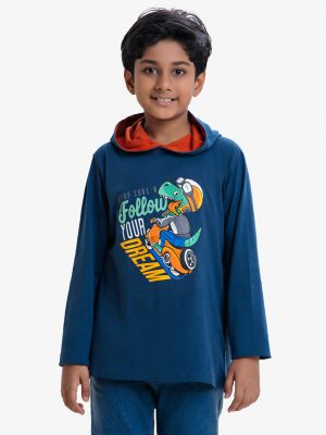 Blue Cotton Long Sleeve Hoodie T-Shirt
