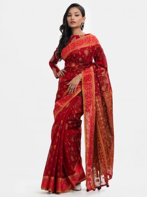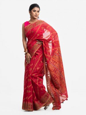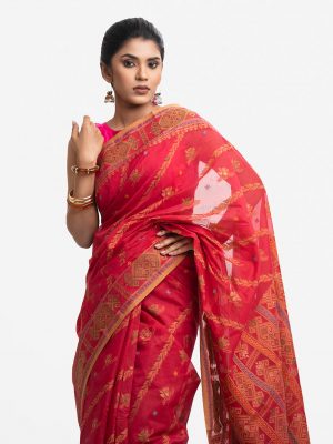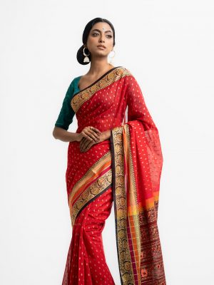 Red Cotton Karchupi Saree