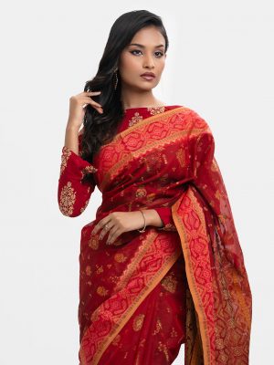 Maroon Half-silk Saree