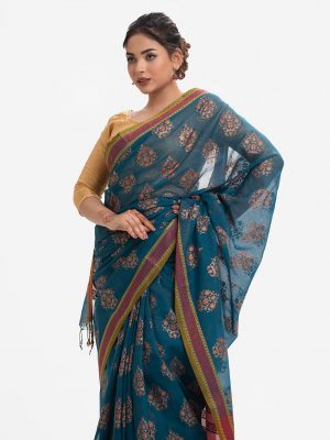 Teal Cotton Karchupi Saree