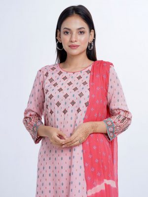 Pink Blended Silk and Viscose Salwar Kameez