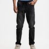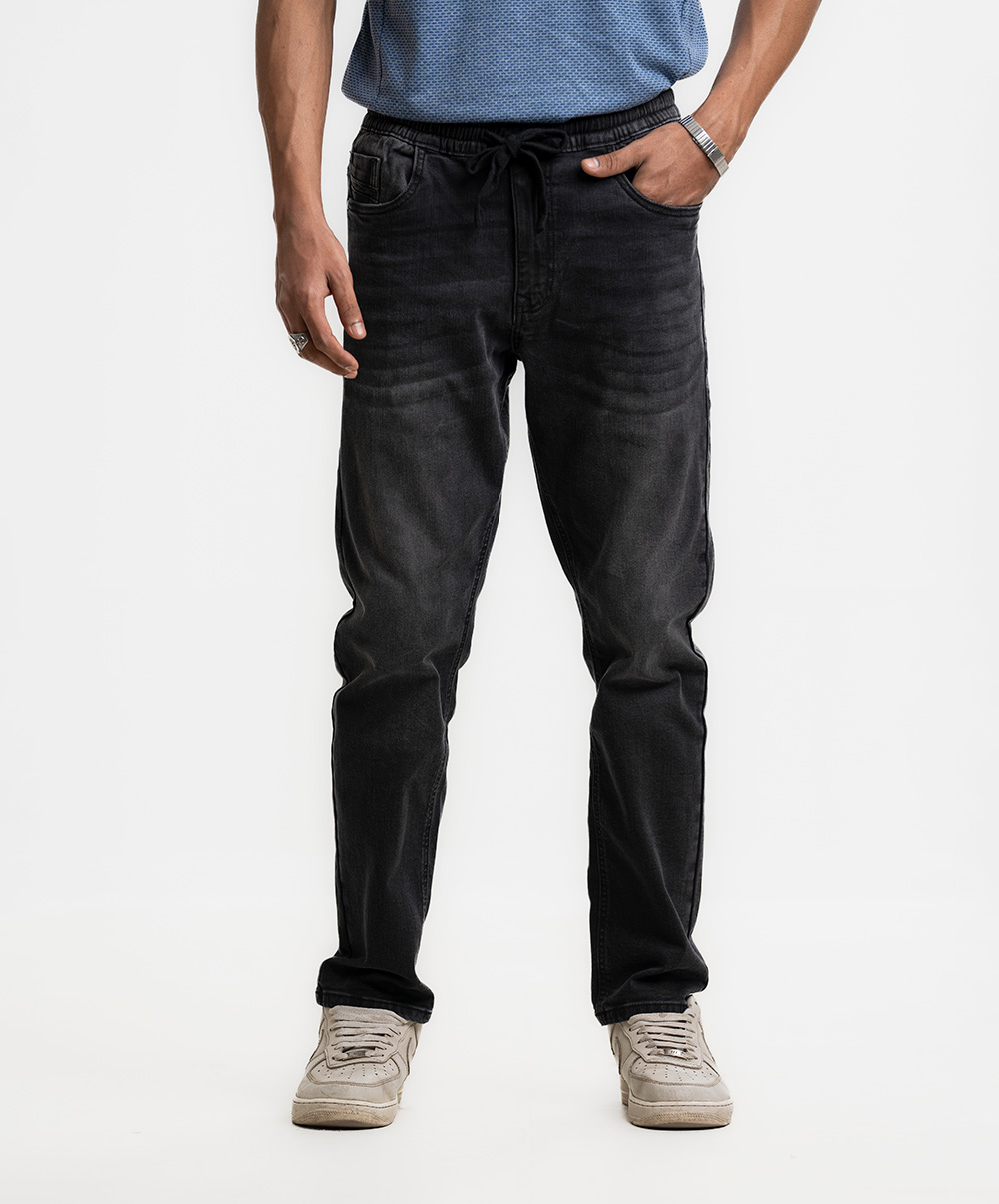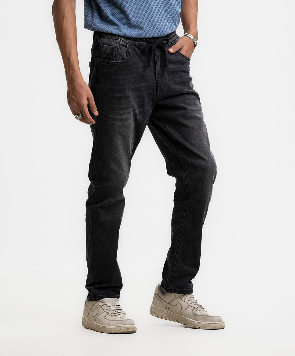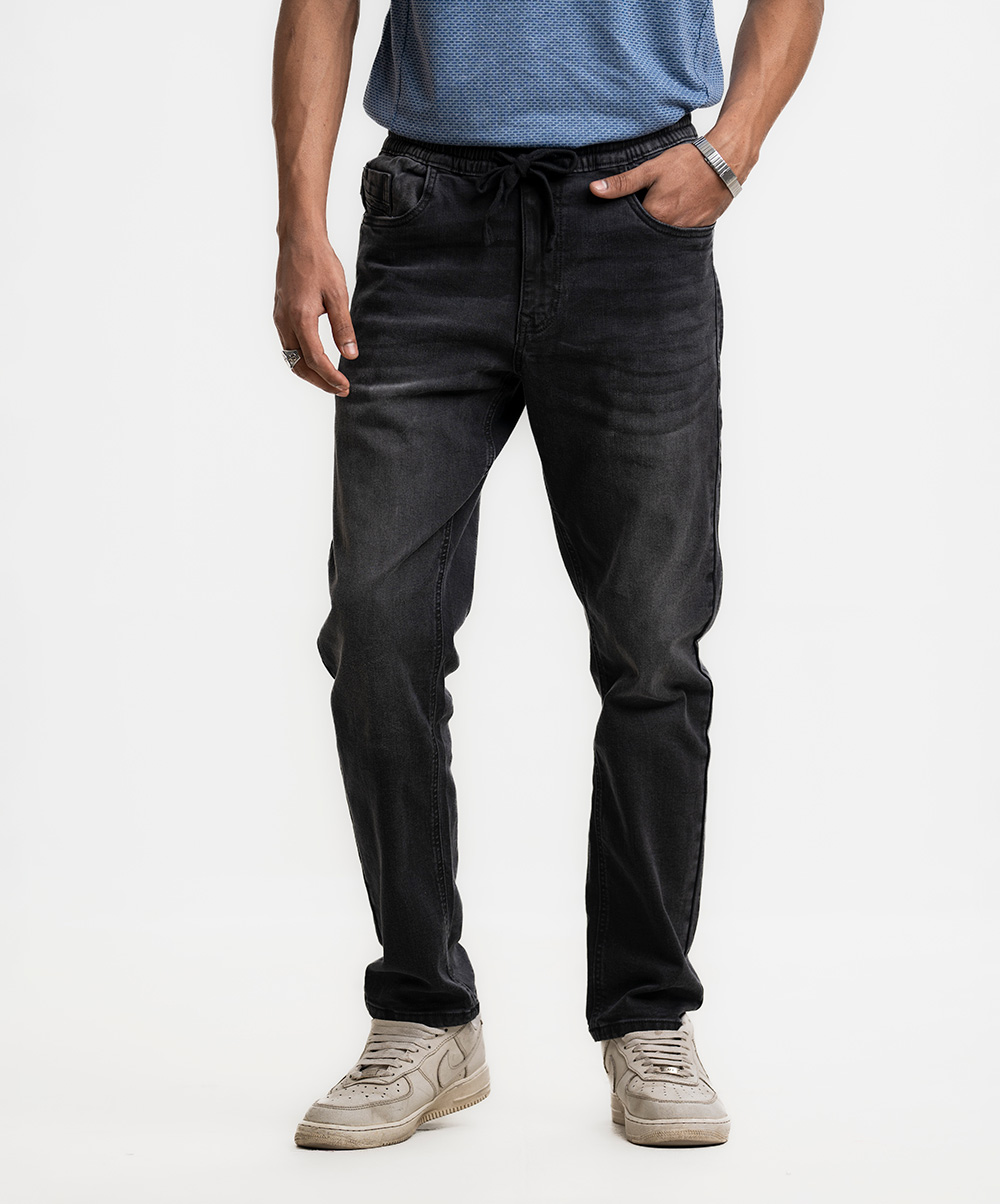 Men’s jeans pants in cotton blended denim fabric. Five pockets, button fastening on the front and zipper fly.