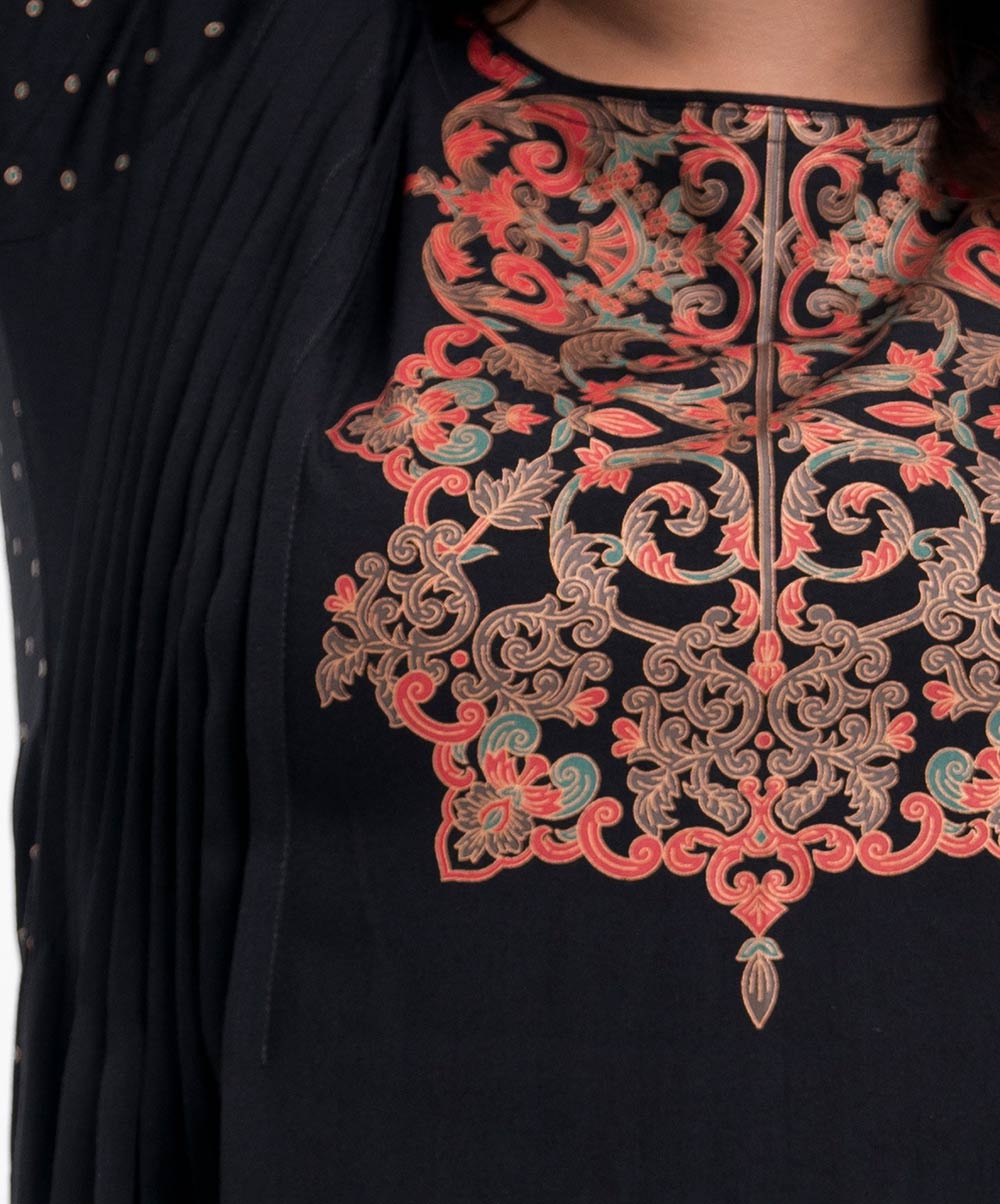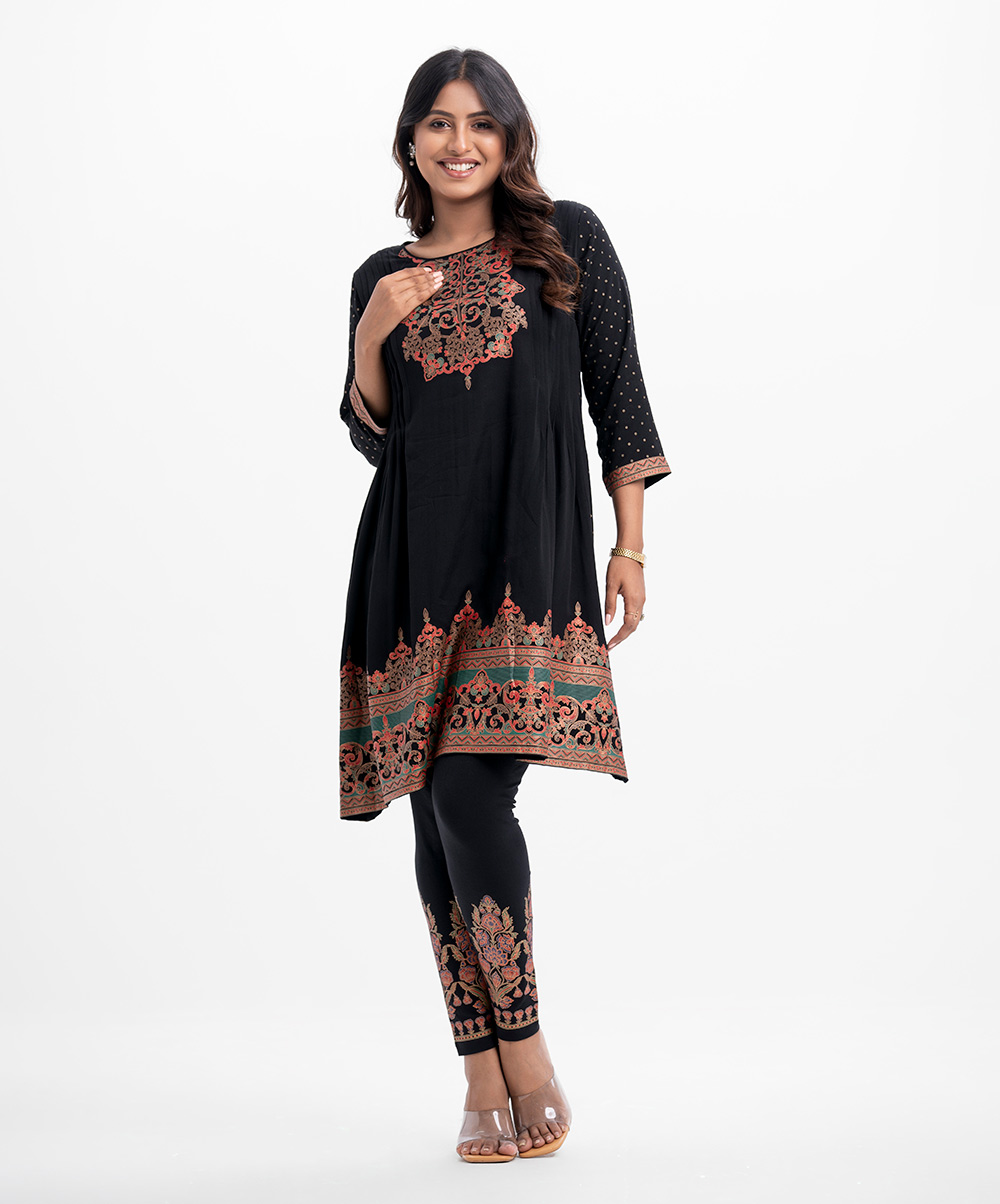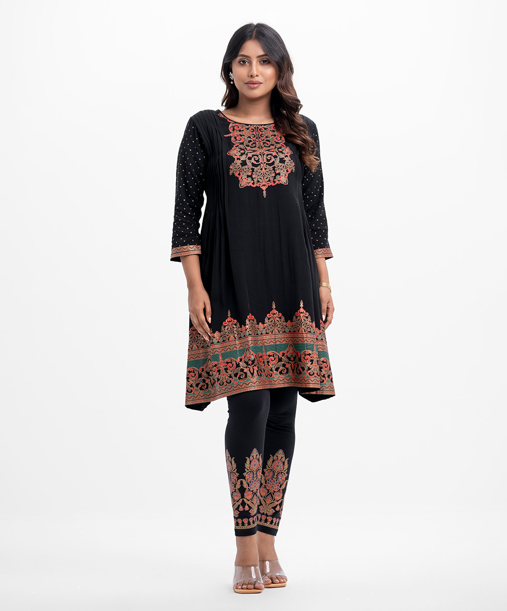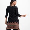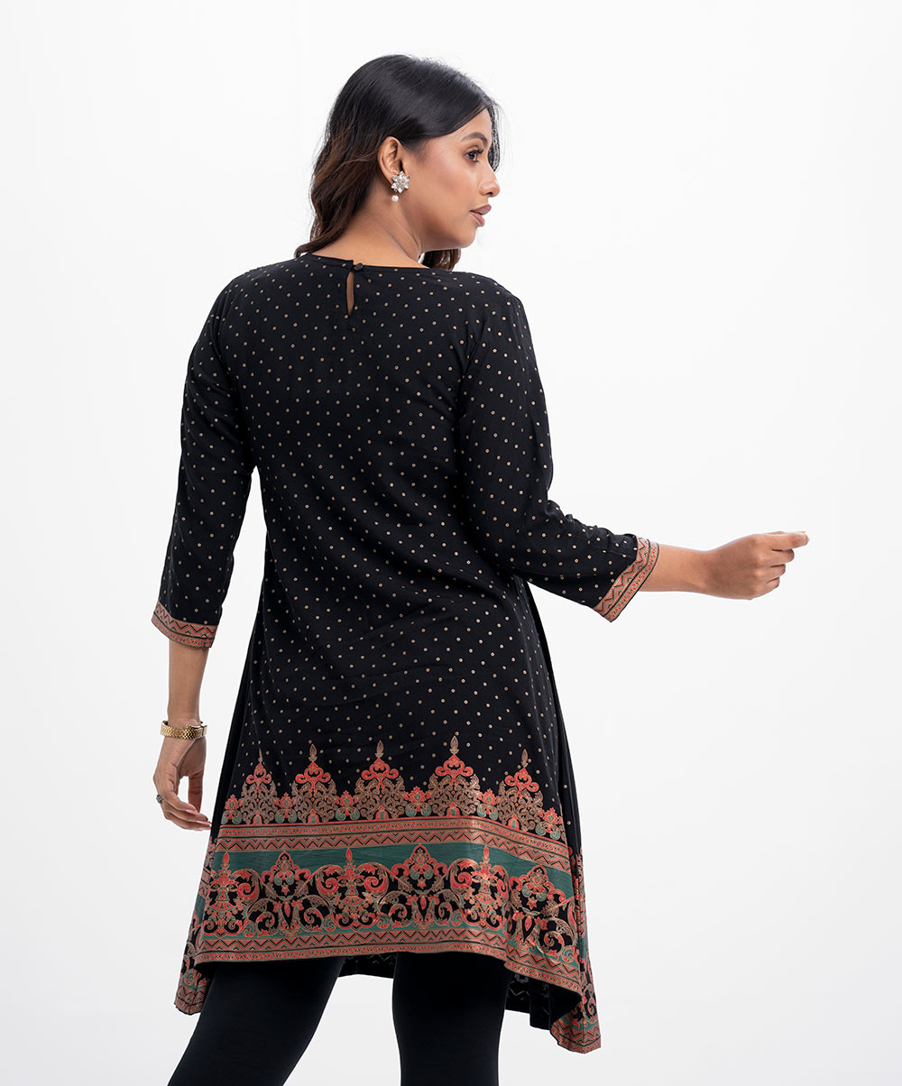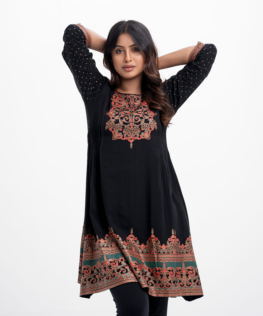 Pintuck detailed A-line tunic in viscose fabric. Round neck with three-quarter sleeves.